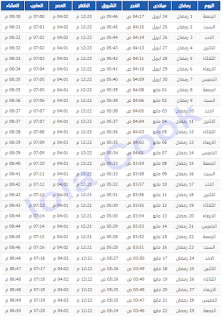 امساكية رمضان 2020 - 1441 في جدة