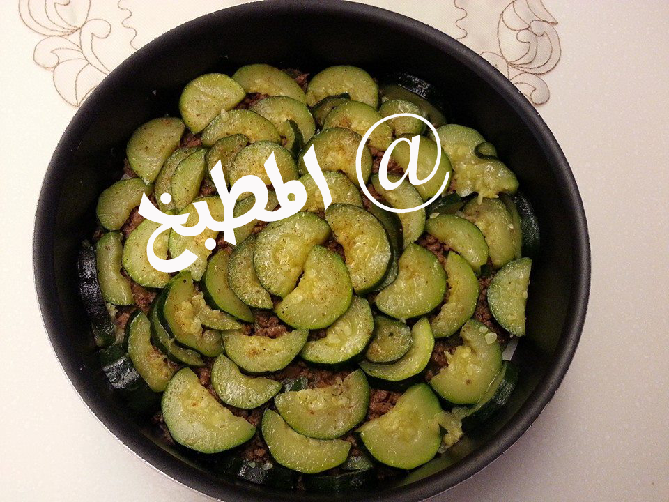 كوسة و بعدين عصاج و بعدين كوسة و بين كل طبقة و التانية رشة بهارات خفيفة و عالوش