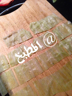نقطعها مقاسات زى بعض ، وبعدين رصيها فى طبق بنظام علشان تكون سهله معاكى فى اللف