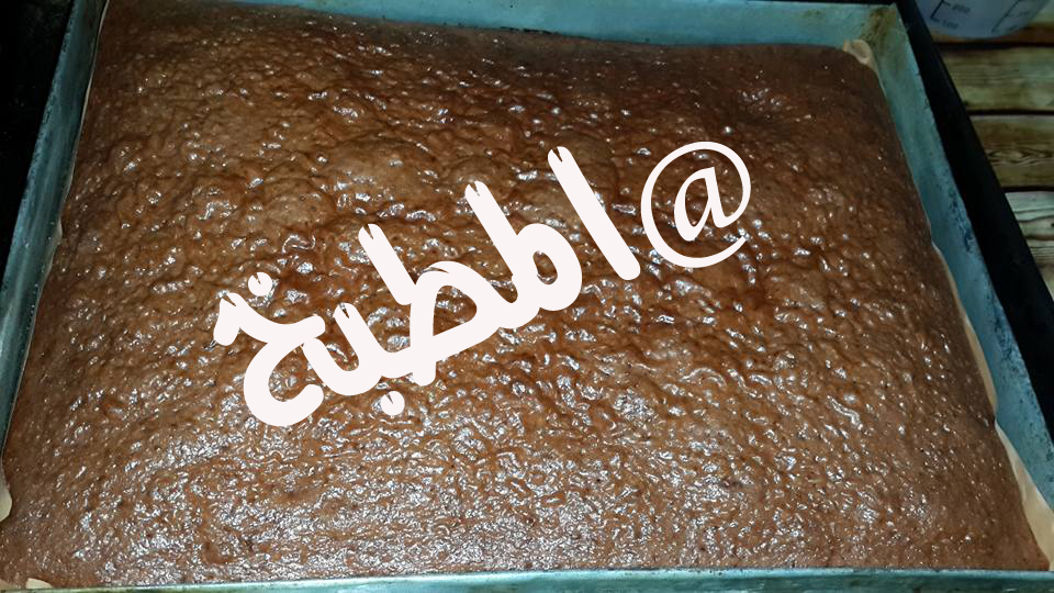 ندهن الصينية بزبدة ونفرش ورق الطهي او ورق الزبدة كي لا تلتصق الكيكة