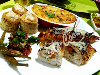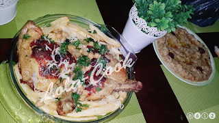 اللحم والتوابل والزيت والزبدة والحمص والبصل والثوم وصلصة