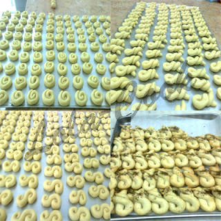 بكل سهولة هنضرب الزبدة مع السمنة مع السكر مع الملح فى العجان لحد متبيض جدا ننزل بالبيضة والفانليا وفى الاخر ننزل بالدقيق ونلمها بايدينا ونحطها فى كيس وتدخل الثلاجة تشد نشكلها كما فى الصورة ونرش على وشها اى نوع سمسم او زعتر او بابريكا وتدخل فرن 180 لمدة 12 دقيقة الى 25 دقيقة