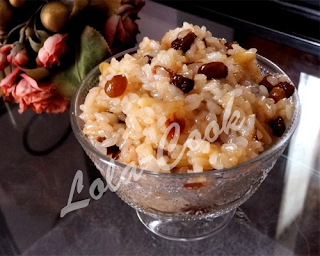 و الزبيب بعد نقعه حوالي نصف ساعة في ماء الورد لكي ينتفخ