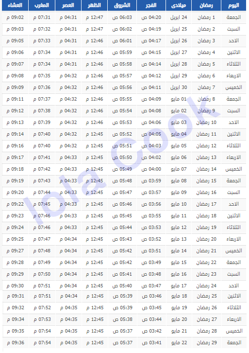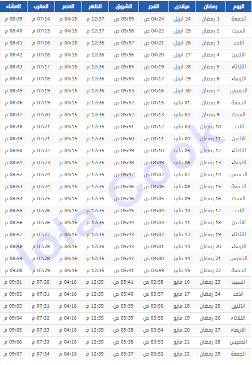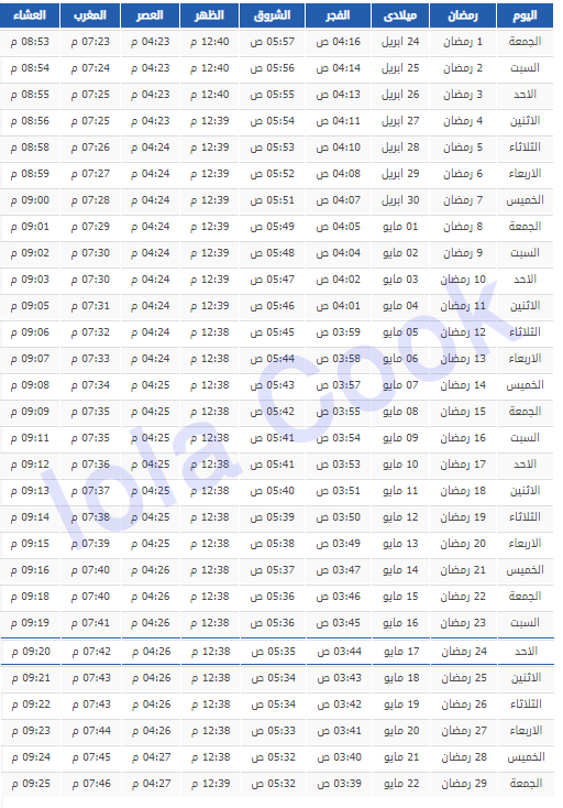 امساكية رمضان 2020 - 1441 في قسنطينة
